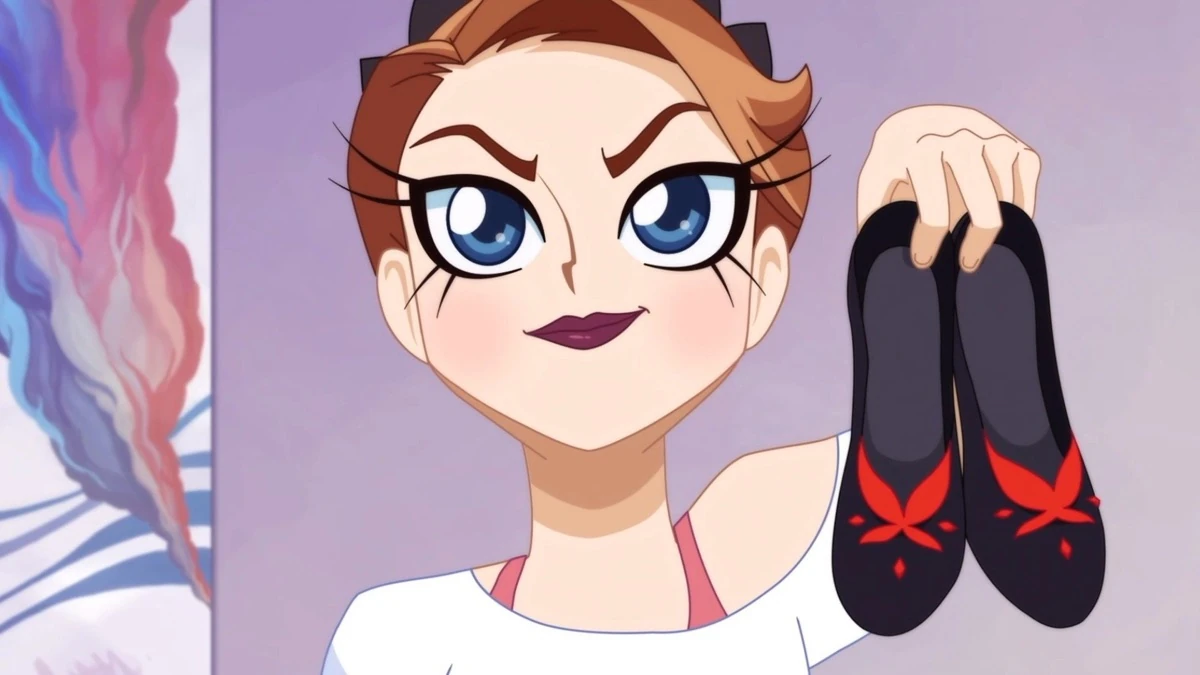 While at the smoothie bar, Lolirock overhears a hipster (Mephisto in disguise) criticizing their on-stage dance moves. The girls take the criticism to heart, and on the way home, they stop in for a dance lesson at a studio run by a strict instructor named Svetlana. Although the three seem to be learning the new moves, Svetlana singles Talia out for special criticism, insisting that she stay after the lesson for more instruction. Svetlana continues to insist that Talia's dancing isn't up to par, and finally suggests she's not using the right shoes. Svetlana gives Talia a pair of special shoes, and the instant Talia puts them on, "Svetlana" reveals herself to be a disguised Praxina. The shoes are bewitched, and Talia is turned into a zombie-like slave bound to do the Twins' bidding. Meanwhile, Iris and Auriana encounter a young man, Taylor, who was on his way to his brother's wedding but lost the wedding rings he was entrusted with. Iris uses a location spell to learn that the rings rolled into a sewer. When the two Princesses go into the sewer to retrieve them, they're attacked by Talia who is under the control of the Twins. Amaru takes the fight to the battle arena where Iris and Auriana are able to maneuver the zombie-fied Talia into hurling the Princesses' latest spell – a confusion spell – at the Twins. Then, after Auriana immobilizes Talia with her ribbon, Iris destroys the enchanted shoes. All three Princesses then return to Earth and help Taylor find the missing rings. Happy to have the rings back, he does an impromptu dance. The girls are so impressed, they ask Taylor to show them his moves, which they deem the "Loli-step". The dance is a huge hit when Lolirock debuts it at a concert that night.