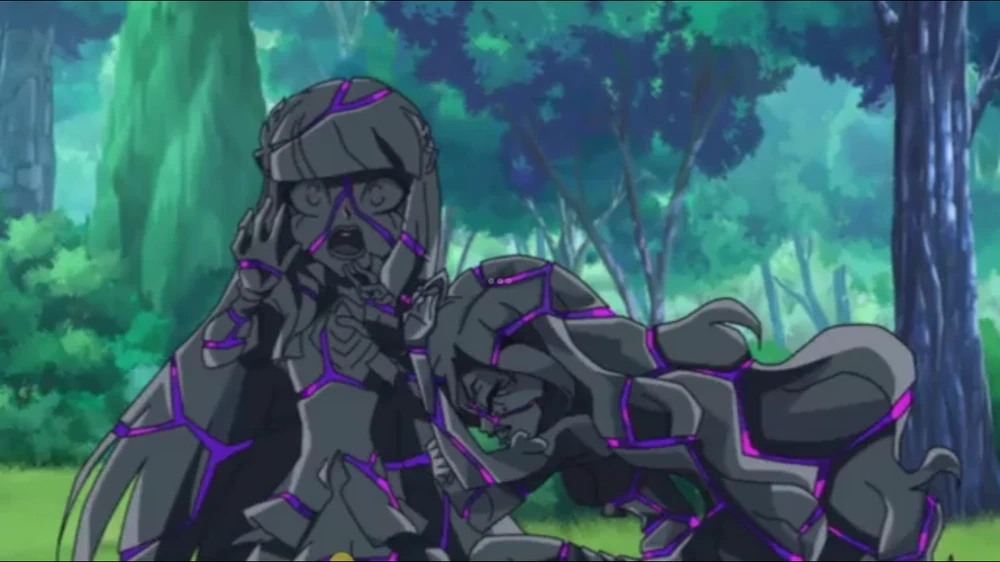 Upset, Jenny runs off into the forest, and Carissa chases after her. When Carissa catches up, Jenny, still frustrated, asks who she is. She then confesses her frustration with her coach’s insistence on teamwork. Carissa relates, saying she hears the same thing all the time, but before she can explain further, Praxina and Mephisto appear. Using their new spell, Petrifus, they activate their amulets and turn Jenny to stone. Praxina then knocks Carissa unconscious with a magical bolt before she and Mephisto petrify Iris and Talia as well.