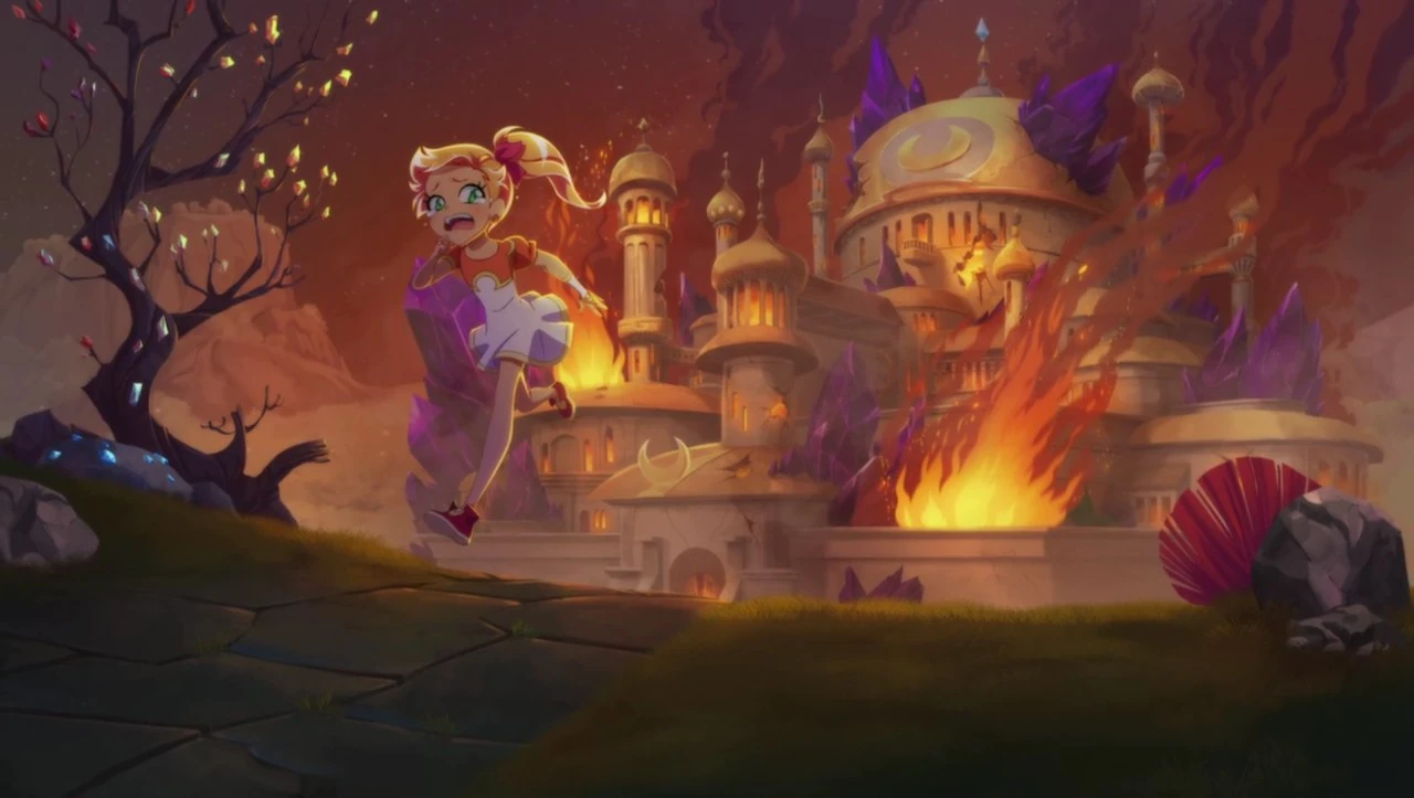 In the episode "Desert Heat", it was revealed that like Xeris, the kingdom of Volta fell from Gramorr conquest. Auriana once said she has 32 unnamed sisters, though the creators reveal on the teams Tumblr page that not all of them are blood-related and that family works differently for Voltans. Gramorr destroyed Volta and imprisoned the Royal Family of Volta in the prison of Volta. The Voltans don their dresses in red or orange hues. Voltan hair color ranges from a salmon red to a bright yellow.